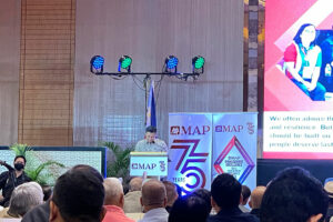 Pedestrians along the Estrella-Pantaleon Bridge are dwarfed by the towering buildings in Makati City, Dec. 5, 2022. — PHILIPPINE STAR/MIGUEL DE GUZMAN THE Department...