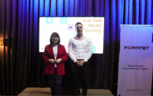 Veronica ‘Bambi’ Escalante, Fortinet Philippines Country Manager with Jonas Walker, Director of Threat Intelligence at FortiGuard Labs during the Fortinet year-end media briefing. — PHOTO FROM FORTINET