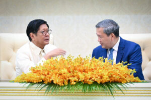 PRESIDENT Ferdinand R. Marcos, Jr. speaks with Cambodian Prime Minister Hun Manet during a bilateral meeting at the Peace Palace in Phnom Penh on...
