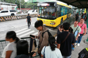 COMMUTERS wait for the bus at the EDSA Busway Nepa Q-Mart station in Quezon City, Feb. 26. — PHILIPPINE STAR/MIGUEL DE GUZMAN By Ashley...