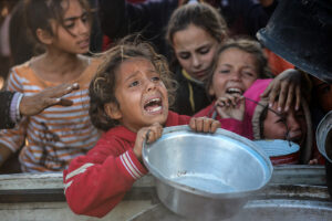 PALESTINIANS gather to receive food cooked by a charity kitchen in Khan Younis, Gaza Strip, in the midst of the Gaza-Israel conflict, on Dec....