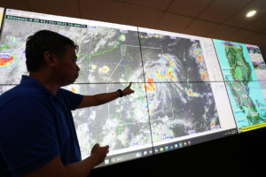 PAGASA Assistant Weather Services Chief Christopher F. Perez monitors the track of Tropical Storm Paolo at the weather bureau’s head office in Quezon City....