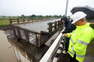 Government officials inspect the construction site of the anomalous flood control project in Barangay Candating, Arayat, Pampanga, Sept. 23. — PHILIPPINE STAR/MIGUEL DE GUZMAN...