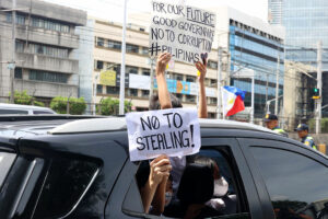 A PASSENGER in a car makes their sentiments known at EDSA during the Trillion Peso March last Sunday. — PHILIPPINE STAR/MIGUEL DE GUZMAN The...
