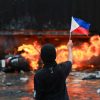 A MAN waves a Philippine flag after young demonstrators staged a violent act along Ayala Bridge near Malacañang compound on Sunday, Sept. 21, 2025....