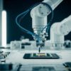 A technician checks the machine with a flashlight at a solar panel manufacturing hub in Greater Noida, on the outskirts of New Delhi India,...