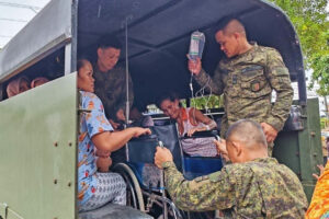 SOLDIERS prepare to transport residents of Mati City, capital of Davao Oriental, who sustained injuries caused by the strong tremor that jolted the province,...