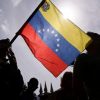 A person holds a Venezuelan flag as government supporters gather after US President Donald Trump said the US has struck Venezuela and captured its...
