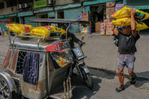 A worker unloads sacks of rice in Manila. — PHILIPPINE STAR/RYAN BALDEMOR THE Philippines is considering raising the price cap on imported rice to...