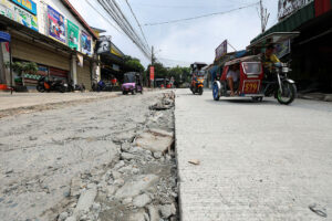 Unfinished roadworks are seen along a street in Caloocan City, Oct. 11. The Public Works department has indefinitely suspended all road reblocking activities due...